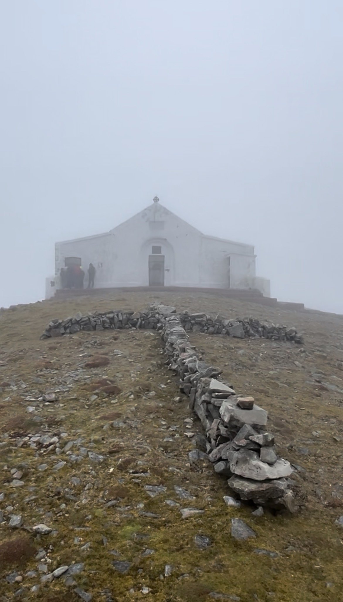 Any other hikers at the summit had taken what shelter they could below the roofline of the century-old chapel. The man who had called to me on the way up held out a piece of dark chocolate with another beaming smile that said “You’ve earned this.”